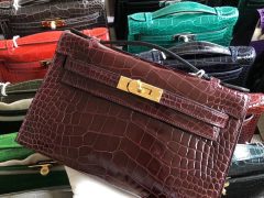 江苏浙江杭州爱马仕鳄鱼女包价格与图片 HERMES MiniKelly Pochette 22cm 亮面方块 美洲鳄鱼 Shiny Alligator Crocodile 全手工蜜蜡线缝 in stock 现货