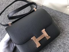 爱马仕康斯坦斯包 Hermes Constance 24 CK89黑色 雾面方块美洲鳄鱼皮 蜥蜴扣