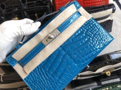 South Korea HERMES MiniKelly Pochette Ck73宝石蓝 Blue Sapphire 供珠鳄鱼