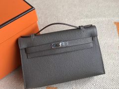 Hermes MiniKelly Pochette 22 P3北方蓝Blue de nord Epsom 银扣