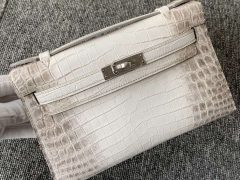 Dhabi Hermes MiniKelly 二代 Matte Alligator Crocodile 8L Beton 奶油白