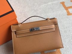 Hermes MiniKelly Pochette 22cm 御用Epsom皮 9J Feu 火焰橙金扣