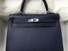 爱马仕经典款女包 Hermes Kelly Bag 25cm Epsom掌纹牛皮 7W伊兹密尔蓝 银扣 全手工蜜蜡线缝