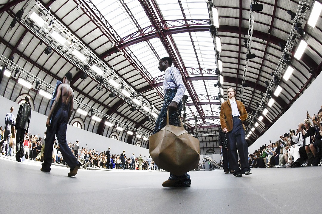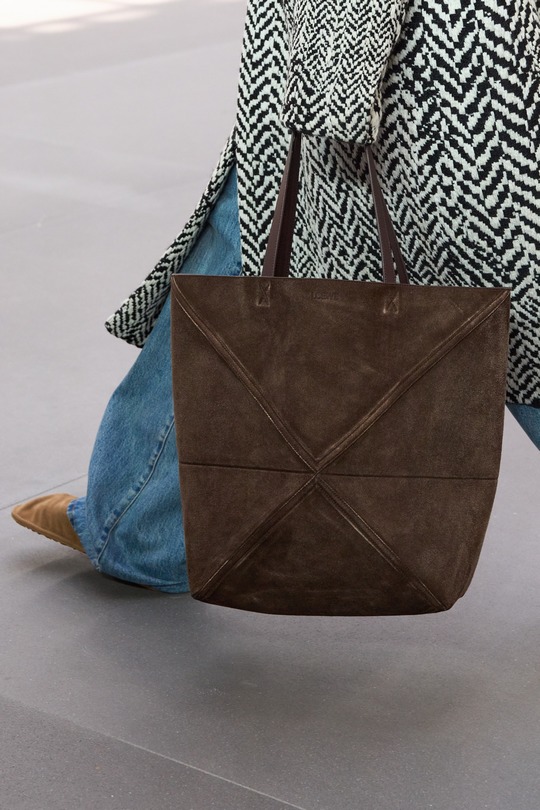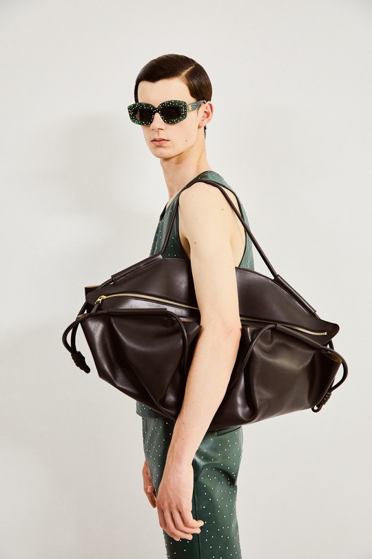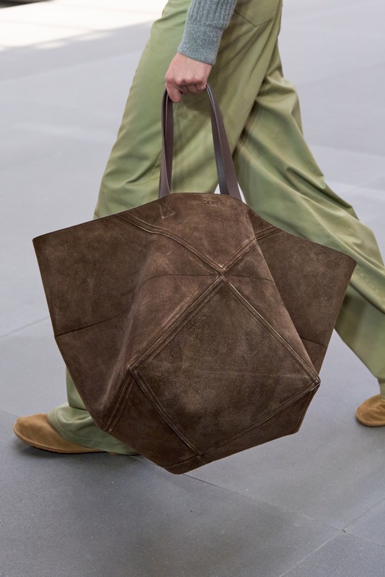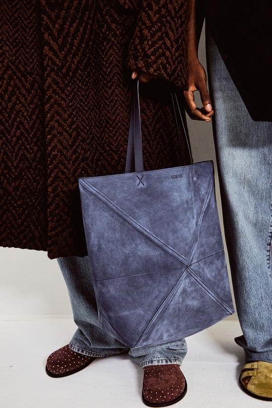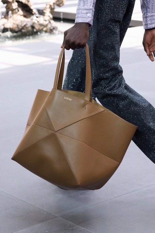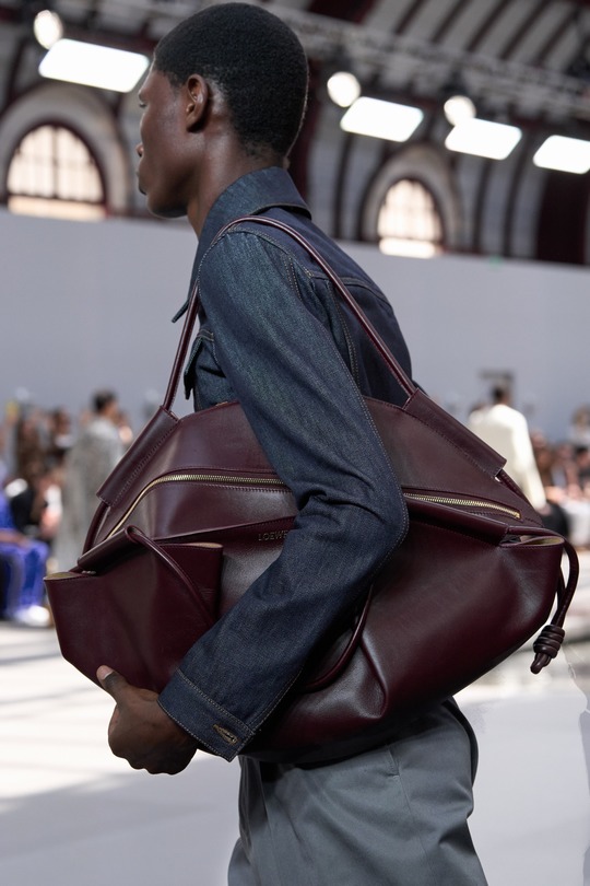 LOEWE 2026春夏男裝秀剛剛在巴黎落下帷幕,本季作品以「視角實驗」(A study on perspective)爲題,設計師用修長的腿部、高聳的腰線和緊實的上身線條勾勒建築般的男裝廓形,讓觀衆猶如透過廣角觀看伸展台。包袋設計依然延續極簡前衛風格,Puzzle Fold 在托特包廓形中融入解構拼圖結構,Pebble 水桶包則以壹枚釘扣作爲唯壹五金裝飾。