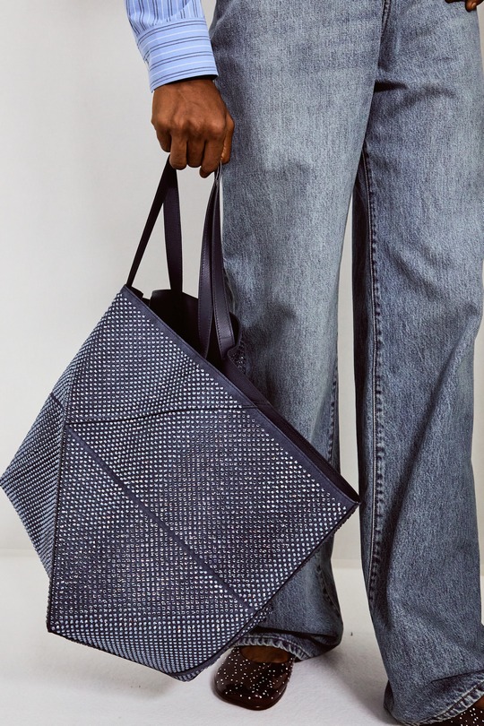 Puzzle Fold 手袋采用柔軟皮革塑造出慵懶托特包型,最大亮點是包包可沿皮革拼縫線自由折疊,延續經典 Puzzle 拼圖包核心設計理念。最奪人眼球的是壹款深藍色水鑽版本,璀璨靈動的光芒爲其注入高調氣質。