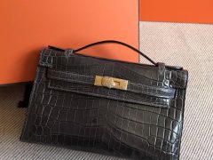 爱马仕迷你凯莉包Hermes mini Kelly 22cm 雾面两点尼罗鳄鱼皮 Matte nilo crocodile 深咖啡色 金银扣金属 原版蜡线 K金五金 进口辅料打造