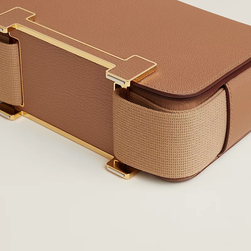 爲了凸顯2022年新款包包Geta Bag的方正澎潤設計,愛馬仕選用紋路細致又有質感的皮革,用品牌少見的Mysore山羊皮縫制,除了包包本身連H字鎖扣也是用同樣的皮革裝飾,成就輕巧柔軟卻硬挺的包身。Mysore山羊皮本身處理不易,可說是低調又美麗,是愛馬仕粉絲們非常喜歡的皮質。