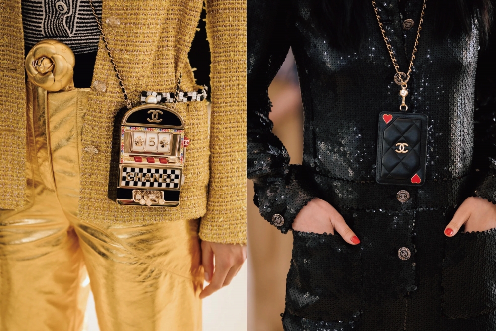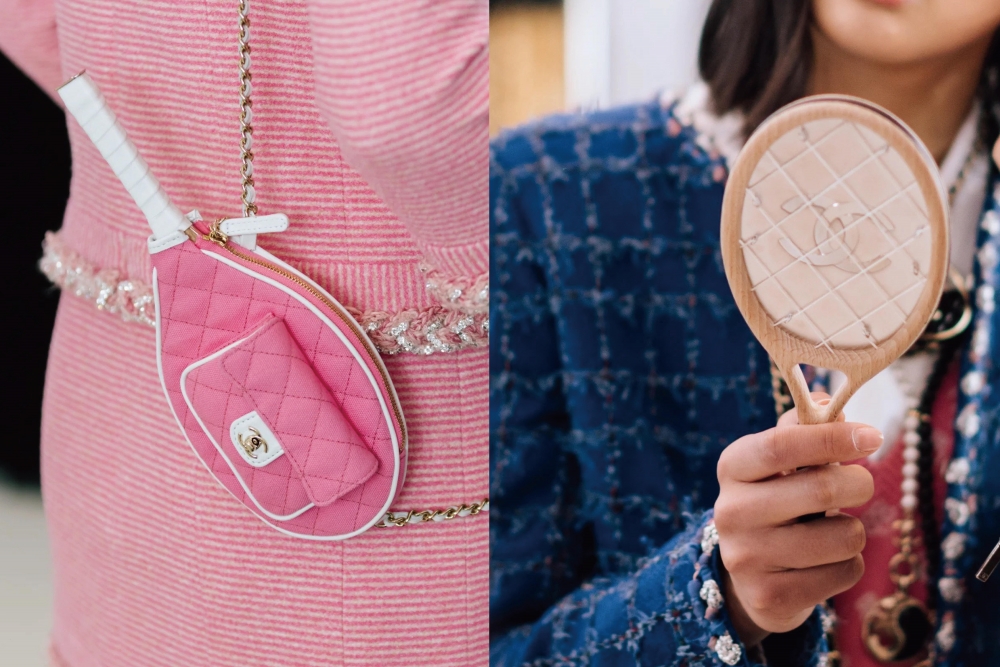 秀上亮相許多新奇的趣味配件,從賽車頭盔的手提包、老虎機錢包,紙牌卡套包,再到以網球拍展現出精致的設計,美妙俏皮的模樣,無可挑剔的工藝,令人深深著迷。應有盡有的CHANEL度假配件,加上亮眼時髦的配色,不只是壹場視覺盛宴,立馬也收入女性的願望清單。
