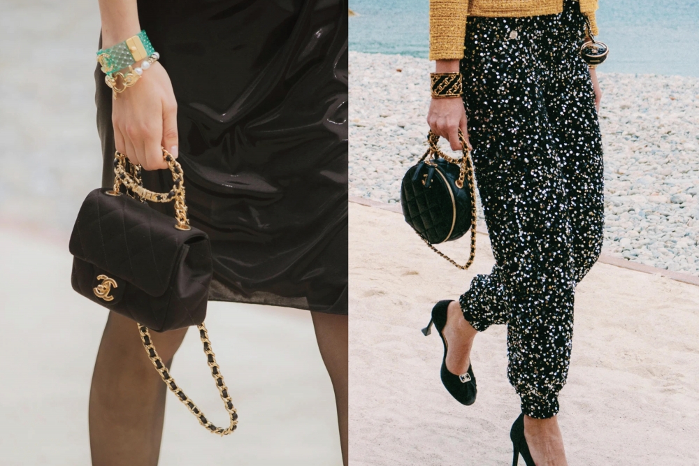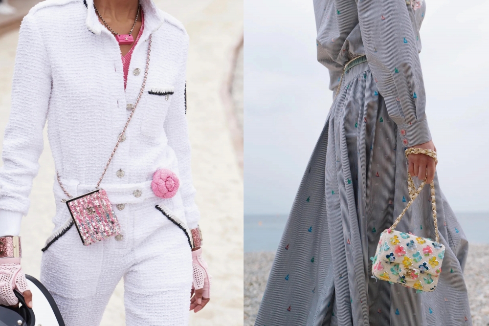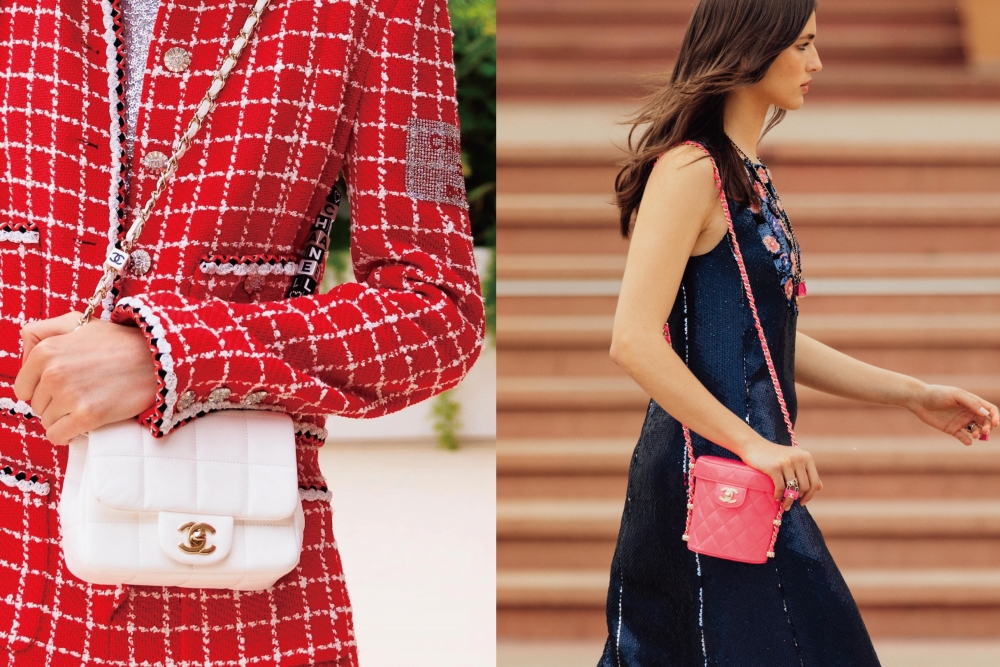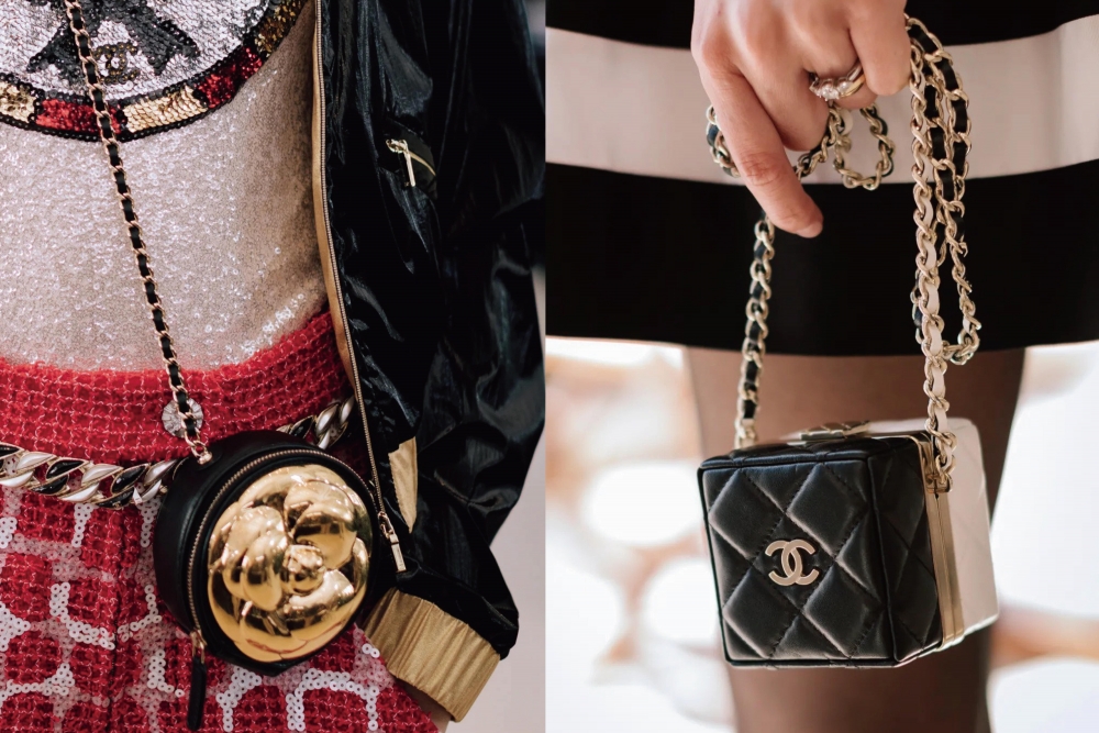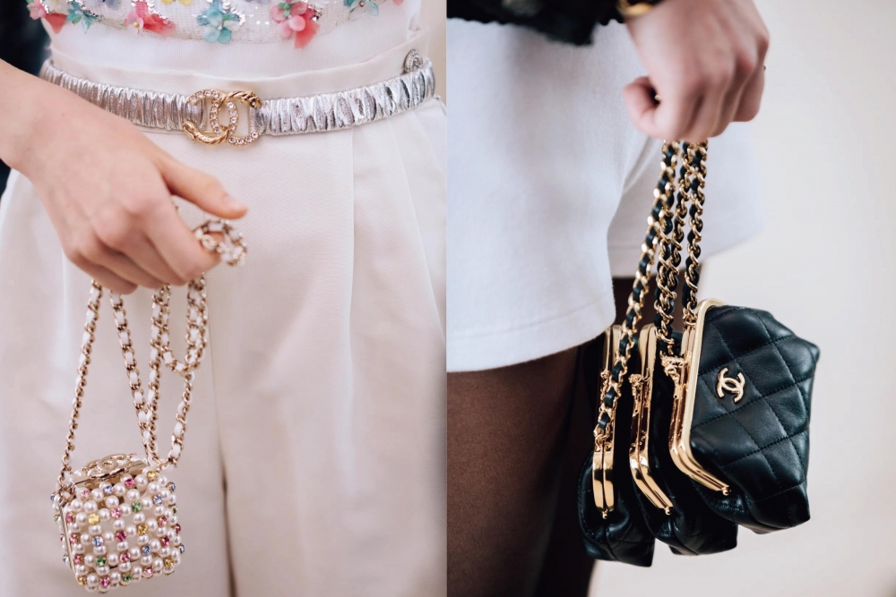 秀場焦點還有多款迷妳輪廓的變奏設計,特別是回顧到CHANEL 2013春夏系列中浮誇的呼拉圈包包,Virginie Viard本季以更內斂以及微妙地方式重新诠釋,濃縮爲小巧的斜跨包。與此,迷妳手袋包括三顆銀包組合成的迷妳包、珍珠盒、絕美的小型手提包,到方形绗縫打造的斜挎包等。
