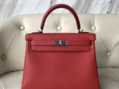 爱马仕凯莉包 Hermes Kelly Bag 25cm Swift calfskin 御用原厂平纹皮 全手工蜡线缝 S5番茄红 金扣 全手工蜜蜡线缝