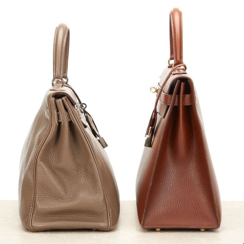 Kelly Sellier凱莉包外縫通常選用Epsom、Box硬皮,會在包包在外側縫合,呈現硬挺方正、堅固的外觀,給人鮮明俐落的印象,最適合職場、宴會等正式場合,有三個版本。由于采用剛性設計,內部容納空間較無彈性。
