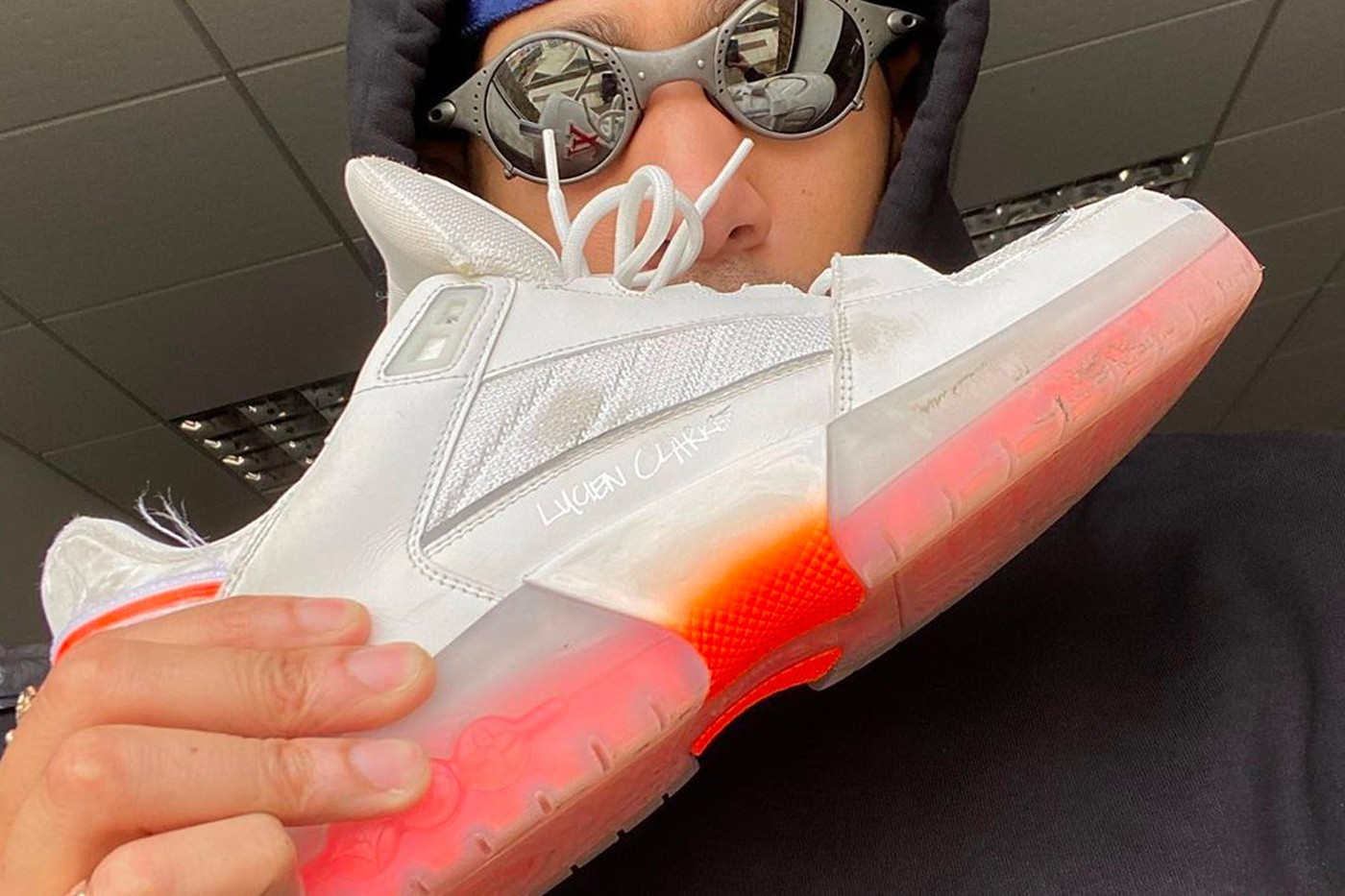 今番 Lucien Clarke 再曝光全新白橘配色,中底设计能看见部分橘色渐变的细节,并辅以半透明外型点缀网眼与优质皮革鞋面,更是亲自著用展现滑板技巧,其著用后的受损痕迹将会为其堆迭更多个人印记。