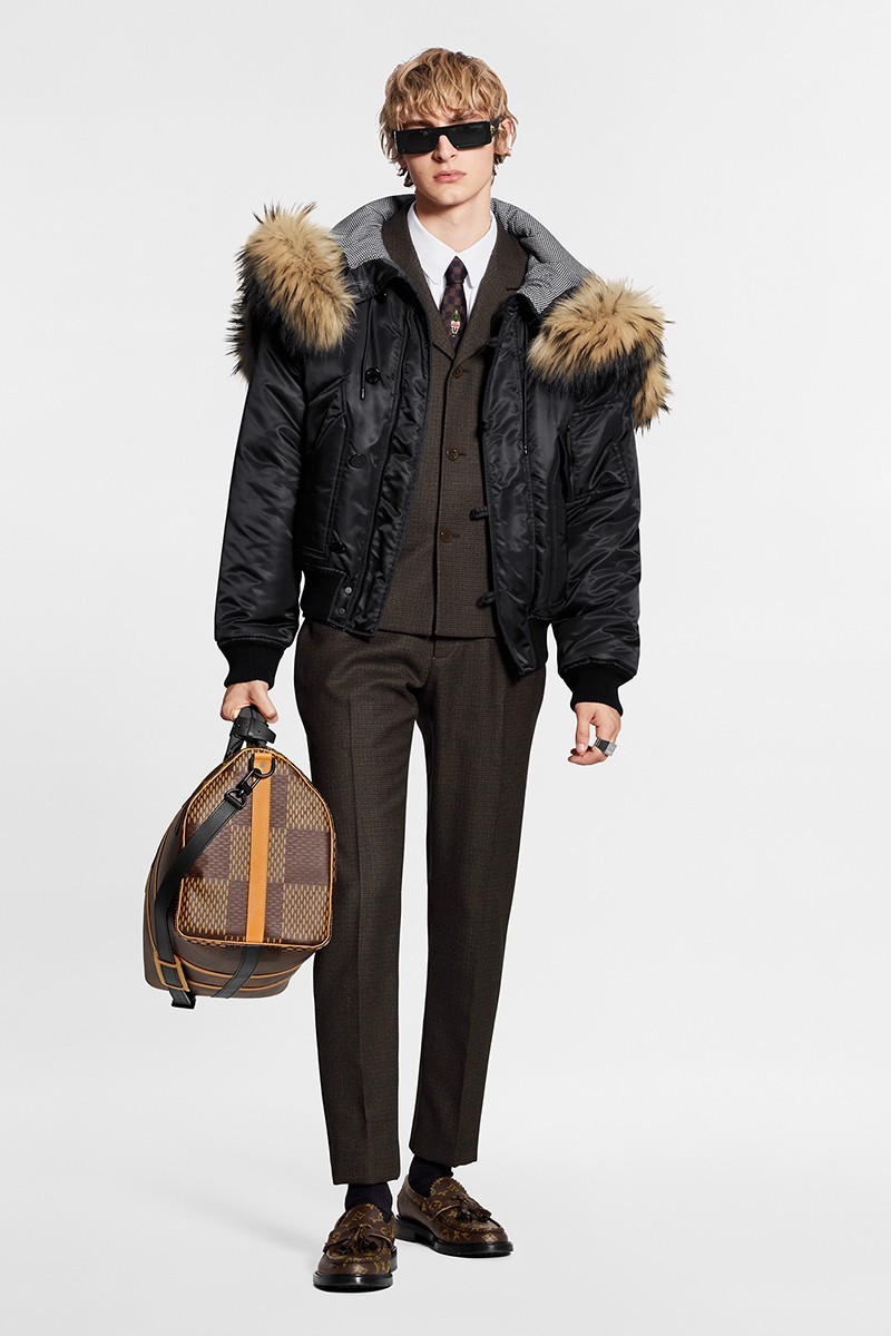 第二波发售单品中能看见 N-2B 飞行员夹克的出现,有著标配的毛皮饰边的帽兜与 NIGO 打造的 LV MADE 字样与富士山图像,本款亦是 Lookbook 中最具辨识度的设计之一;此外亦能看见最具代表性的 Monogram 与 Damier 格纹所打造的套装系列,推出多款灰色、棕色、黑色与丹宁等配色凸显多元层次。