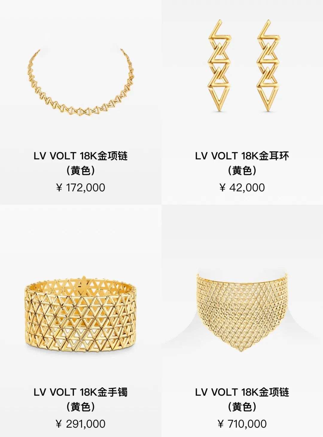 Louis Vuitton 高级珠宝系列LV VOLT已正式登陆路易威登新品体验店微信小程序和官网发售,该系列是品牌腕表和珠宝艺术总监Francesca Amfitheatrof继在2019年推出首个珠宝系列B Blossom之后,又一个颠覆性的创新系列,以清晰而摩登的设计语言对品牌经典的首字母“LV”为主题设计,主打混搭风格的中性珠宝,售价1.3万元人民币起,其中一条18K金的项链定价高达71万元,为品牌史上最贵的珠宝产品之一,引发业界和消费者高度关注。