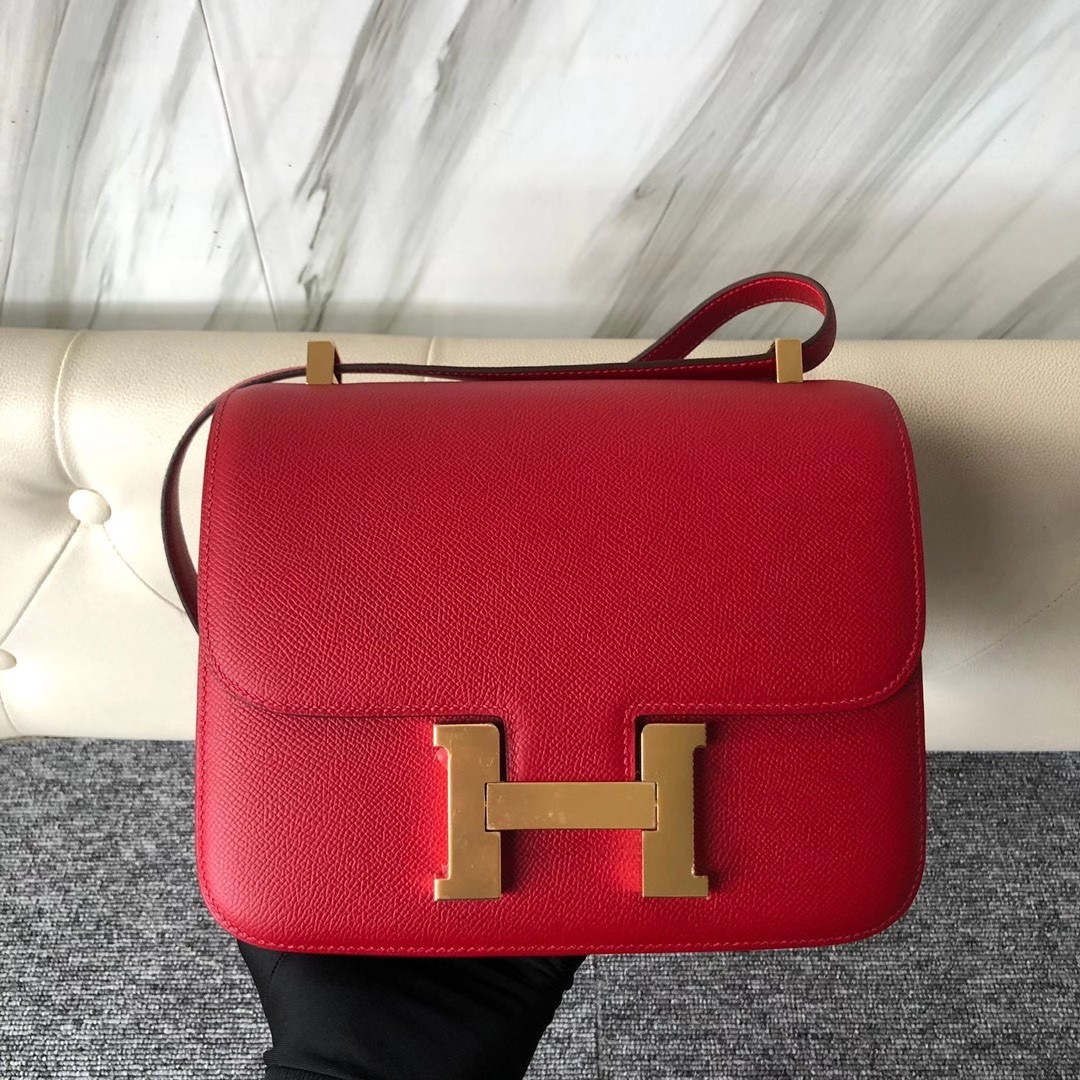 山东济南爱马仕康斯坦斯包 空姐包价格多少钱 Hermes Constance 24cm Epsom Q5 Rose casaque 国旗红 全手工蜡线缝制