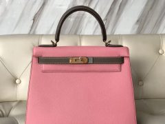 爱马仕拼色凯莉包Hermes Kelly 28 Bag L3玫瑰紫拼4Z海鸥灰 Epsom手掌纹