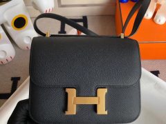Singapore Hermes Constance 19cm CK89黑色Epsom 3P马卡龙蓝珐琅扣