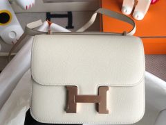 爱马仕康康空姐包多少钱 San Francisco USA Hermes Constance 24cm Evercolor 8L Béton 冰川白 又叫水泥灰 玫瑰金扣 全手工蜜蜡线缝制