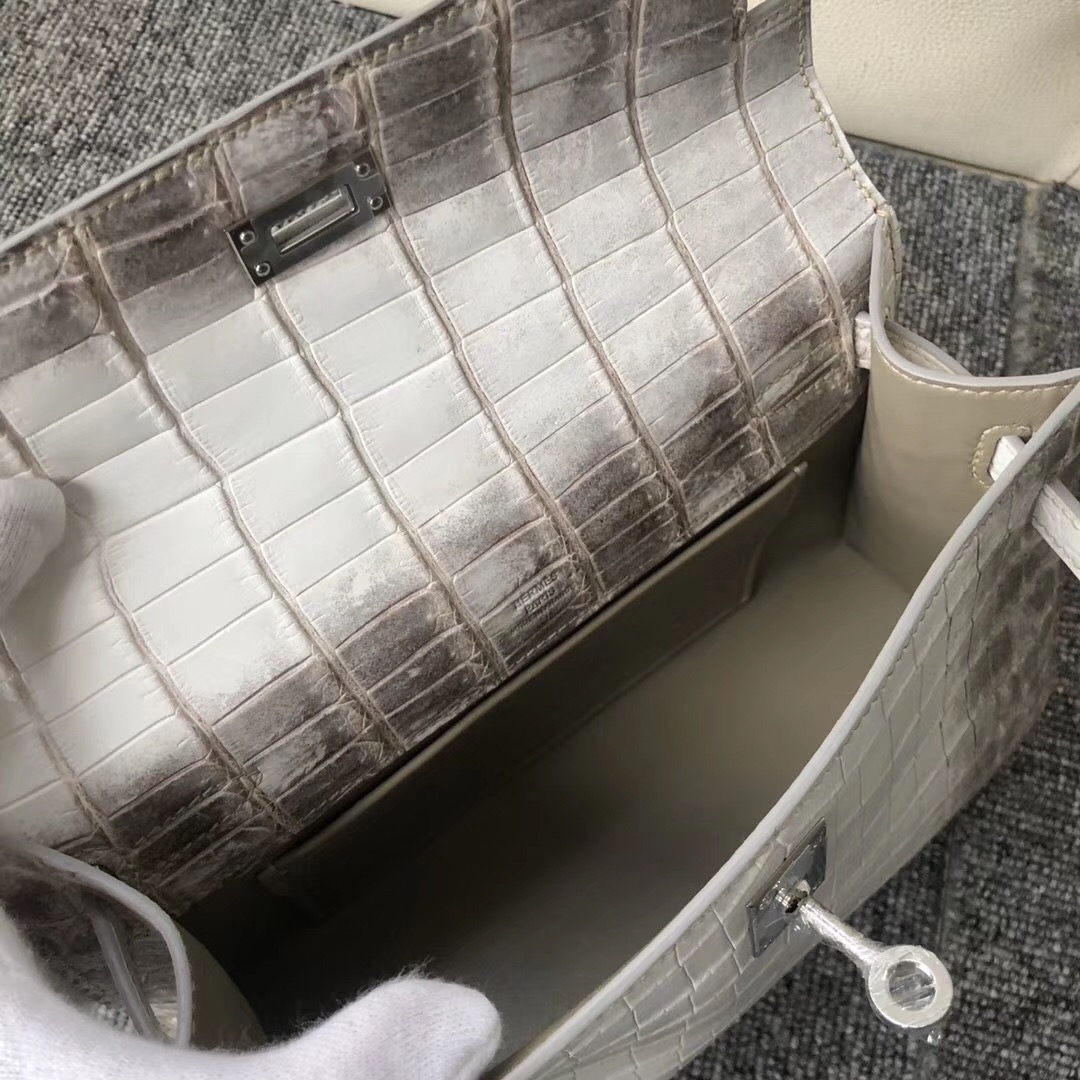 爱马仕2020年什么刻 Y刻 定制爱马仕喜马拉雅迷你凯莉包一代价格 Customized Hermes MiniKelly Pochette 22cmHimalaya Matte Crocodile 喜马拉雅 完美品相 全手工蜜蜡线缝 银扣