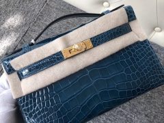 Qatar Kuwait Hermes MiniKelly 22cm Pochette 亮面方块 美洲鳄鱼 Shiny alligator crocodile 7Q希腊蓝 Blue Mykonos