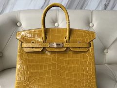 Hermes 9D琥珀黄 Amber Birkin 25cm 铂金包 亮面两点 尼罗鳄鱼皮 金扣图片