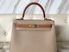 爱马仕kelly凯莉包 Hermes Kelly 25cm Bag Epsom CK18大象灰/8w新唇膏粉金扣