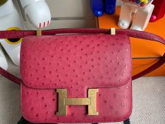 爱马仕空姐包包Hermes Constance 24cm 御用kk 南非鸵鸟皮 9D琥珀黄 金扣