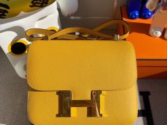 爱马仕空姐包包Hermes Constance 24cm 御用kk 南非鸵鸟皮 9D琥珀黄 金扣