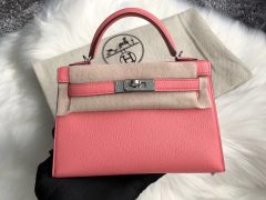 爱马仕包包官网 Hermes MiniKelly二代 9i玉兰粉Epsom牛皮 图片尺寸 19cm