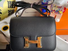 Hermes Constance 19cm 新颜色 M3墨水蓝 Blue Encre 亮面方块 美洲鳄鱼