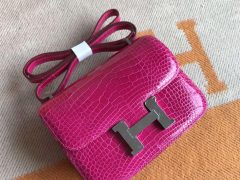 爱马仕康斯坦空姐包 Hermes Constance 23 亮面方块鳄鱼皮革 Matte alligator crocodile 9W 梦幻紫 Crocus 金扣金属五金。又简称康康空姐包。 Hermes Constance elan Bag是属于爱马仕最难买的包袋,其小巧玲珑易于携带,包身“H”标志极具个性。