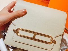 爱马仕猪鼻子包包 Hermes Roulis 19cm 3C羊毛白 Ostrich原厂kk南非鸵鸟皮 金扣