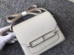爱马仕猪鼻子包包 Hermes Roulis 19cm 3C羊毛白 Ostrich原厂kk南非鸵鸟皮 金扣