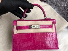 U.S.A Hermes mini Kelly 一代 L3玫瑰紫 Rose Purple Epsom皮 银扣