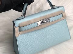 爱马仕凯莉包迷你19CM Hermes MiniKelly2代 J7 Blue Lin 亚麻蓝