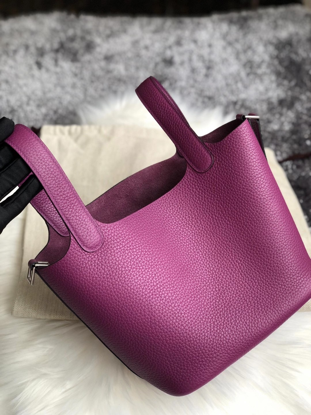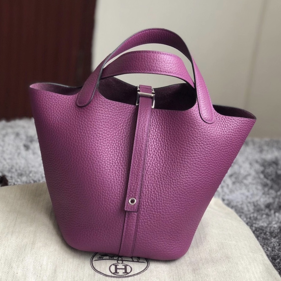 爱马仕菜篮子包专柜价格 多少钱 Kuwait Bahrain Hermes Picotin Lock 18 P9 Anemone 海葵紫 taurillon Clemence 大牛皮 全手工蜜蜡线缝制 银扣