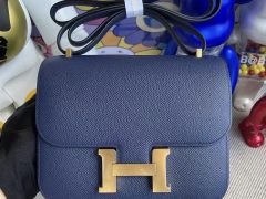 Hermes Constance 19cm 新颜色 M3墨水蓝 Blue Encre 亮面方块 美洲鳄鱼