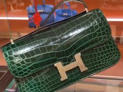 Hermes Constance 19cm 67 Vert Fonce 祖母绿 亮面方块美洲鳄鱼 Shiny alligator crocodile 、蜥蜴扣全手工缝制 可接受定制