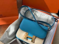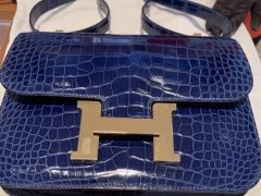 Hermes Constance 19cm 新颜色 M3墨水蓝 Blue Encre 亮面方块 美洲鳄鱼