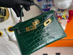 Dhabi Hermes MiniKelly 二代 Matte Alligator Crocodile 8L Beton 奶油白