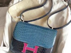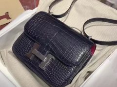 Hermes Constance 19cm 新颜色 M3墨水蓝 Blue Encre 亮面方块 美洲鳄鱼