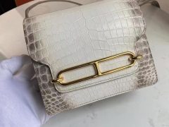爱马仕猪鼻子包 Hermes Roulis 19cm Y1香草色 美洲鳄鱼拼 自然色蜥蜴 完美品相