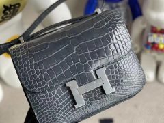 Hermes Constance 19cm 新颜色 M3墨水蓝 Blue Encre 亮面方块 美洲鳄鱼