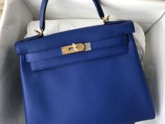 爱马仕kelly包包 Hermes 凯莉包Kelly 28cm Togo I7琉璃蓝 blue zellige御用原厂小牛皮 银扣全手工蜜蜡线缝制