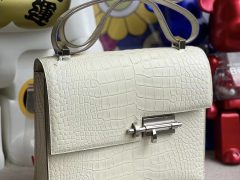 爱马仕手枪包价格及图片 Kuwait Hermes Verrou 21cm 8L Beton 奶油白美洲鳄鱼