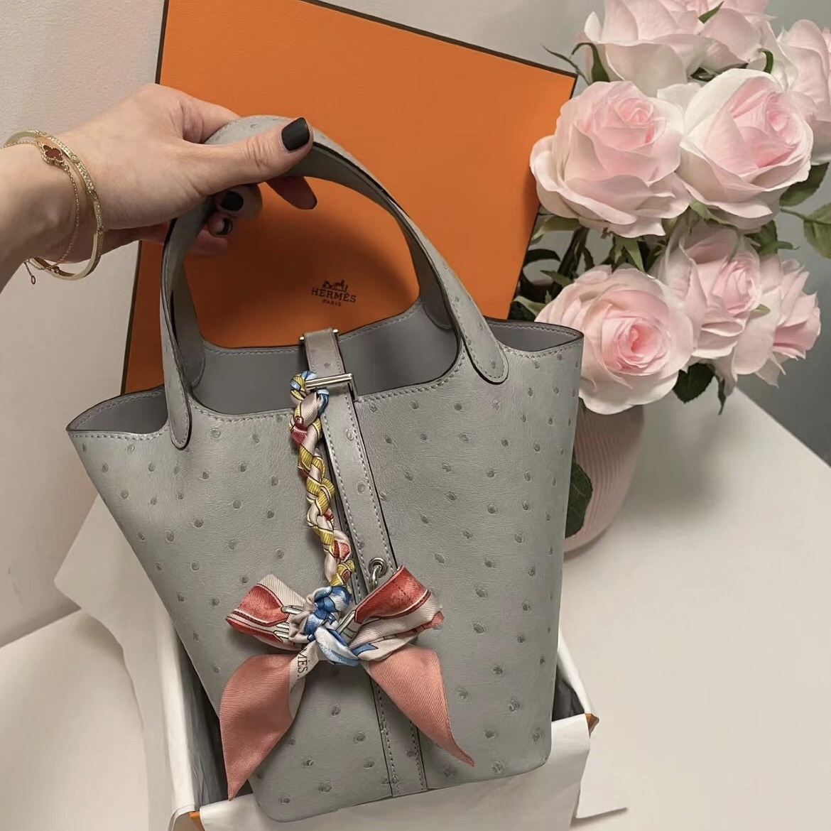 UAE Dubai Hermès Picotin Lock 18 Ostrich 御用原厂进口KK鸵鸟皮 8U Blue Glacier 银扣 Palladium Hardware 全手工蜜蜡线缝制 接受定制