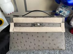 Kuwait Abu Dhabi Hermes MiniKelly Pochette 22cm Ostrich 3C Parchemin 羊毛白 全手工蜜蜡线缝制 金扣 客定出