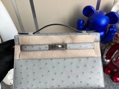 Qatar Doha Hermes MiniKelly Pochette 22cm Ostrich M8 沥青灰 Griss Asphalte 全手工蜜蜡线缝制 银扣