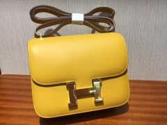 Vancouver Canada Hermes Constance 19cm 9D 琥珀黄 Amber 美洲鳄HCP鳄鱼皮