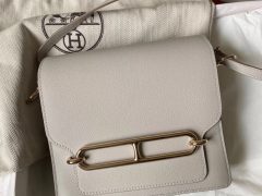 爱马仕猪鼻子包包 Hermes Roulis 19cm 3C羊毛白 Ostrich原厂kk南非鸵鸟皮 金扣